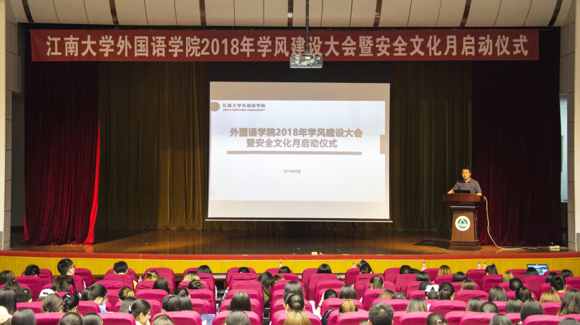 leyu(中国)2018年学风建设大会暨安全文化月启动仪式于5月31日晚在南活报告厅如期举行。校学工处副处长汪双喜、院党委书记黄城芳、分团委书记杨艳、辅导员张圆、黄颖以及15级、16级、17级全体学生到场参加,大会由院党委副书记刘伯贤主持召开。
