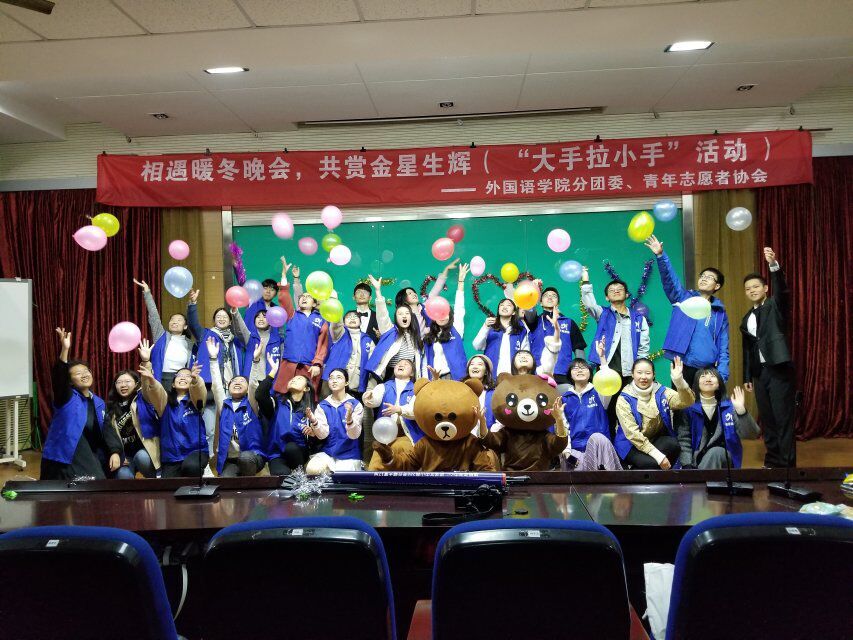 2018年11月23日,leyu(中国)青年志愿者协会走进我市进城务工子弟学校金星中学,举办大手拉小手“星期三课堂”系列活动。11月23日,外院青协携手金星中学主办了一场暖冬晚会。次日,在分团委书记杨艳老师和青协成员的带领下,金星中学的部分学生参观了江南大学。
