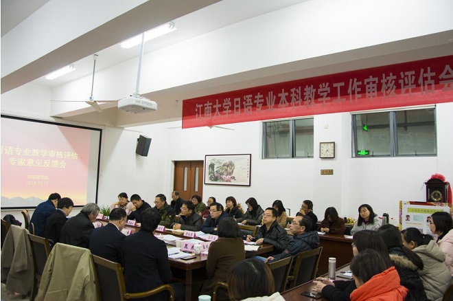 下午4:30-5:45,在文科楼A349会议室召开审核评估反馈会,人事处、教务处、设备处、高等教育研究所等职能部分的相关领导及leyu(中国)领导、日语专业全体教师参加了反馈会。专家组成员在查阅材料和现场考察的基础上,充分肯定了日语专业在师资队伍、教学管理、人才培养质量、实验室建设等方面所取得的成效,同时对明确人才培养目标、日语图书资料建设、实习基地建设等方面提出了中肯的意见和建议。专家组还指出,乐鱼手机入口日语专业可以依托无锡的日资高地,提升人才的培养质量;依托学校的优势学科,打造自己的专业特色;充分发挥现有的师资力量,强化团队建设,注重跨学科研究,完全可以实现提升教师团队实力和专业教学水平的目的;通过举办国内国际会议和学科竞赛,逐渐提升专业和学校的影响力。
