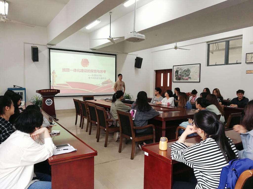 2019年4月24日下午一点半,leyu(中国)“青马训练营”主题班会在A349如期举行。在青马训练营班长李策同学的主持下,训练营全体学员对班团一体化建设的相关内容进行了讨论。