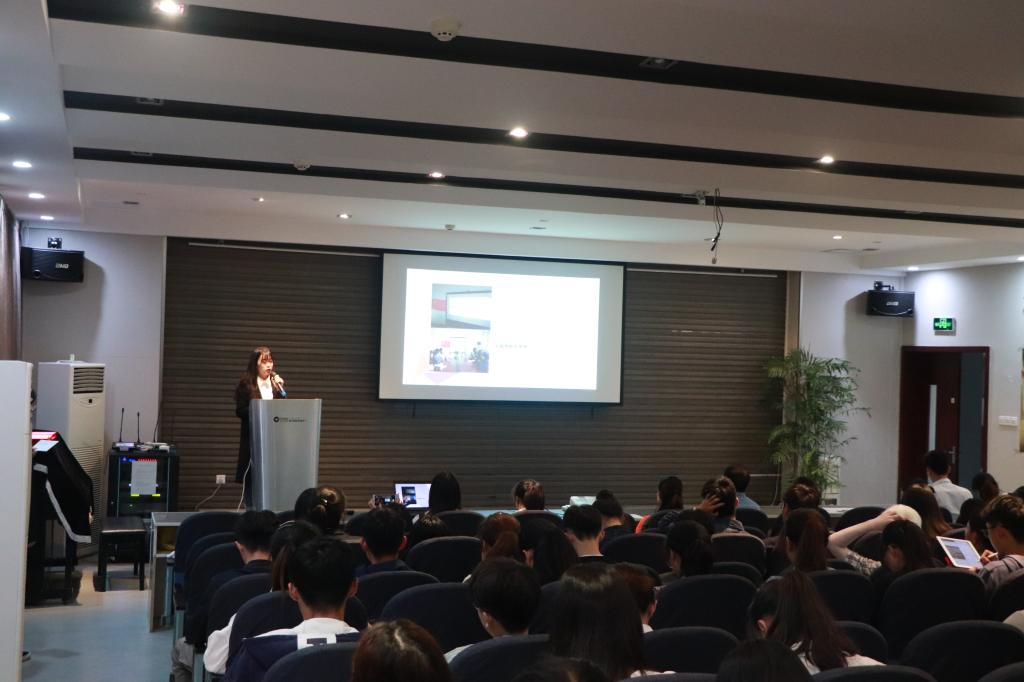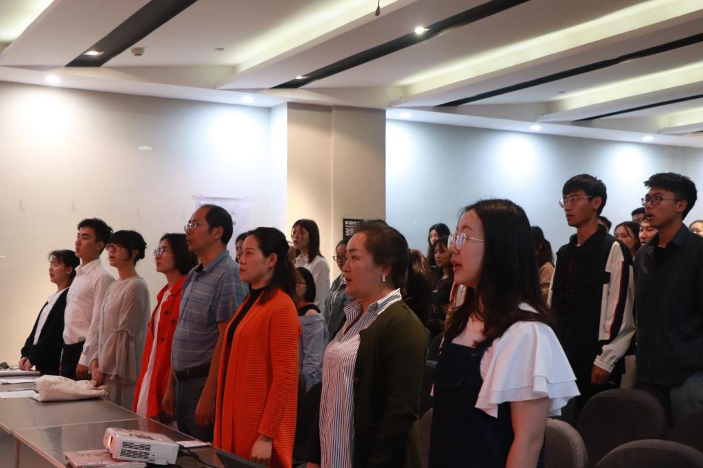 仪式在奏唱国歌中拉开序幕,三个学院主题实践团队代表分别上台分享实践成果。leyu(中国)日语1703班于雯雯代表我院三个实践小组进行主题为“不忘初心、砥砺前行——我和我的祖国主题实践活动”成果汇报。她从听、学、读、唱、行、拍六个方面详细介绍小组的实践内容和学员们的所思所悟,鼓励广大学员不忘初心、不断进步,在求知中践行,在学习中成长。