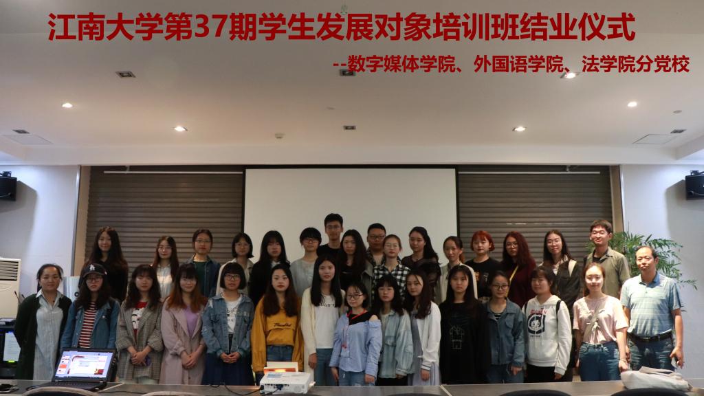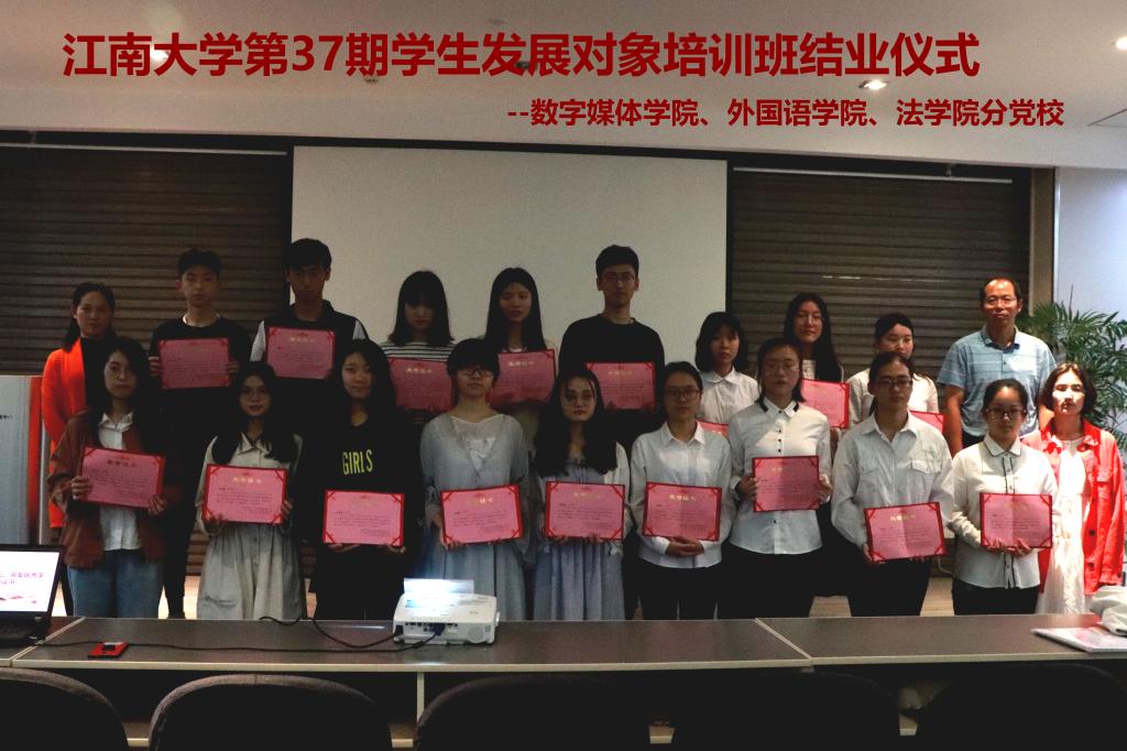 2019年5月15日下午,江南大学第37期发展对象培训班leyu(中国)、数媒学院、法学院分党校结业仪式在数媒学院116报告厅顺利举行。学院党委副书记副院长刘伯贤、分团委书记杨艳出席结业仪式。
