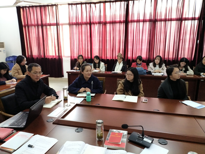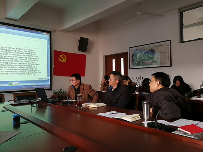 11月22日下午13:30,leyu(中国)师生共建党支部进行新一轮的政治理论学习,英语系教工党支部与2014-2016级本科学生党支部全体党员在A349举行“学习党的十九大精神——十九大报告英译交流研讨会”。