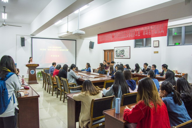 2018年4月23日晚六点半,乐鱼手机入口青年马克思主义者培养工程训练营暨外院团学菁英班(以下简称院“青马工程”)开班仪式于外院楼A349室举行。校团委组织部部长夏京璟,学院党委副书记副院长刘伯贤,关工委委员鲍国庆,分团委副书记张圆,辅导员黄颖,学生会主席团成员出席开班仪式,学院分团委书记杨艳主持了本次开班仪式。