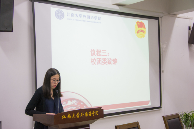 接着进入了开班仪式第一项议程,奏唱中国共产主义青年团团歌。随后杨老师介绍了今天到场的各位领导与嘉宾,并邀请校团委组织部部长夏京璟老师致辞。夏老师提出要保持团组织的先进性,用习近平新时代中国特色社会主义思想武装自身,武装全团,阐明了青马工程培训的目的与意义,指明了青马工程的培训目标,为团学组织建设提出了建议和努力方向。并嘱托在座青马训练营营员能够在本次青马训练营中“学得透、学得进、学的广”。