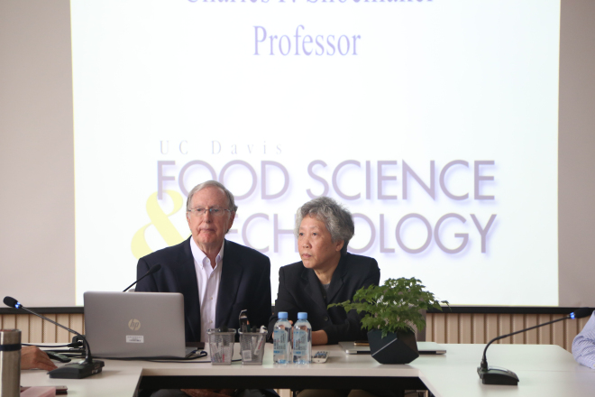 2018年5月7日上午,乐鱼手机入口在A529举办了“遇见更好的自己”首期名师沙龙活动。首期嘉宾邀请了加州大学戴维斯分校食品科学与技术系教授 Charles F. Shoemaker。一同出席的还有江南大学原副校长王武、leyu(中国)党委书记黄城芳、leyu(中国)党委副书记刘伯贤,以及学院各年级学生代表。