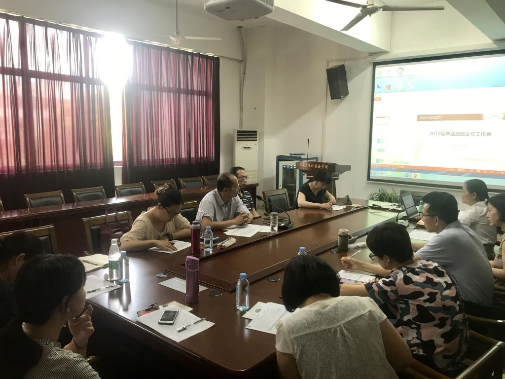 5月15日下午,leyu(中国)在A349会议室召开2018届毕业班班主任工作会议。院党委副书记刘伯贤主持会议,教学副院长方文开、毕业年级辅导员杨艳以及全体毕业班班主任老师参加会议。