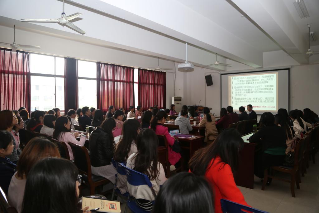 427日下午,leyu(中国)A349会议室座无虚席。上海外国语大学博士生导师张健教授应邀为我院师生作题为《走出外宣翻译的误区》的精彩讲座,讲座由leyu(中国)翻译团队负责人王金安教授主持。leyu(中国)翻译团队全体教师、英语系全体教师、大学外语拓展部与基础部部分教师与部分研究生聆听了讲座。本次讲座还有来自无锡市外办、无锡市翻译协会、无锡太湖学院的部分教师参加。
