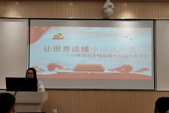 活动第一部分为主题学习——党的十九届六中全会精神。全体成员首先集中观看了党的十九届六中全会精神学习视频,之后,包青、余丽丽、金夏妃、曹玥四位同志就视频内容从不同角度分享了自己的学习体会。其中,包青同志讲道:党的十九届六中全会是一场梳理发展历程、凝心聚力的党课,党和国家这一路走来很艰辛,我们现在的成就来之不易;作为一名党员,今后我们要脚踏实地、发挥先锋模范作用,践行好一名共产党员的职责和使命。党的十九届六中全会精神的学习极大促进和增强了与会同学的政治理论学习效果。