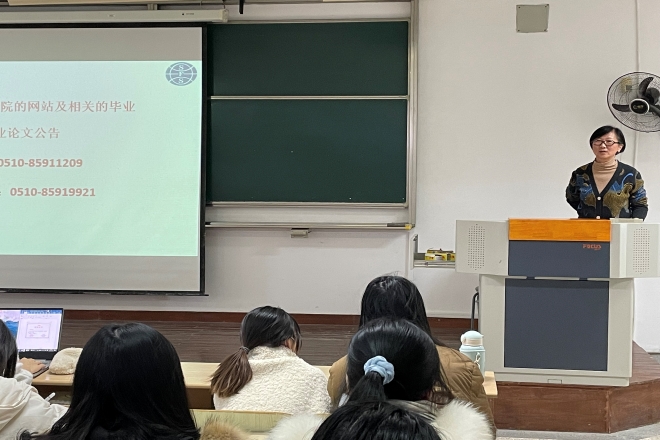 首先,学院党委副书记刘伯贤围绕“实习安排”、“注意事项”以及“就业工作”进行介绍。刘书记表示:大家要充分重视实习实践环节,借助实习的机会了解行业、岗位,为自己的就业最好准备,为后期的职业发展打下基础。随后,日语系副主任管纪龙老师从“诚信教育”、“实习安全”、“实习成长”三个方面进行介绍,英语系副主任杨昊老师从“就业情况”、“论文安排”等方面提醒学生各项注意事项。最后,学院副院长顾琦一动员讲话。顾院长表示:毕业实习是大学学习阶段重要的实践性教学环节之一,是理论与实践相结合的重要方式。希望大家在理想与现实之间明确自身的定位,及时调整心态,从细节处提升自己。最后顾院长提醒大家要及时和指导老师汇报实习情况,及时跟进论文撰写等进度。