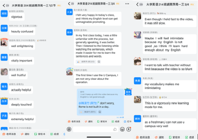 在学校各部门的协助下,大外全体任课教师认真落实《江南大学2021-2022学年第二学期本科教学工作方案》要求,开展教考分离教学改革,开课前完成全员iTEST试题库建设培训,教师组建班级群,发送学习通通知,结合钉钉、QQ、微信等多渠道,确保来自全校不同专业的英语班级群学生顺利在线学习。