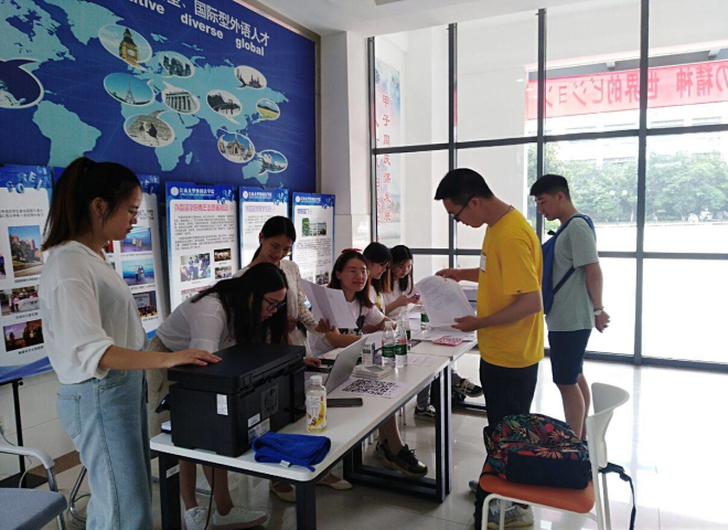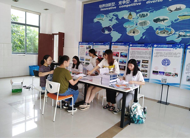 约8点左右,研究生新生们带着喜悦的心情陆续来报到。在老师与学姐们的旁悉心指导与帮助下,证件核对、信息确认、材料递交、资料下发,一切都在忙而不乱之中有序完成。在场师生对新同学时而嘘寒问暖,时而热情帮助,解决了报到中的各种突发情况,使同学们倍感江大外院大家庭的温馨与温暖。下午一点半左右,在学院研会各位同学的辛苦付出之下,所有19级研究生新生都已顺利报到。