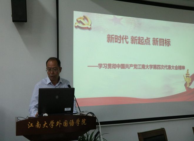 此次专题党课从“第四次党代会概况”、“党委工作报告”、“贯彻落实大会精神”三个方面展开讲述。首先,刘伯贤副书记介绍了第四次党代会的主题、开幕盛况及大会号召。随后,刘书记介绍了党委工作报告,并围绕“过去六年来的回顾总结和基本经验”、“新时代学校的历史使命、奋斗目标和战略重点”、“聚焦一流,奋勇攀登,努力实现学校发展新跨越”、“深入学习贯彻党的十九大精神,奋力开创党建和思想政治工作的新局面”四个方面进行了全面、详细地讲述。最后,刘书记强调了未来一段时间要重点抓好的四个方面工作,贯彻落实中国共产党江南大学第四次代表大会精神,指出党员同志要勇于担当,砥砺前行,并叮嘱各学生党支部要扎实开展“不忘初心、牢记使命”主题教育,紧密结合主题学习的要求,完善丰富主题教育活动的内容及形式,引导教育广大学生党员坚定理想信念,恪守学生职责,更加自觉地为实现新时代党的历史使命不懈奋斗。