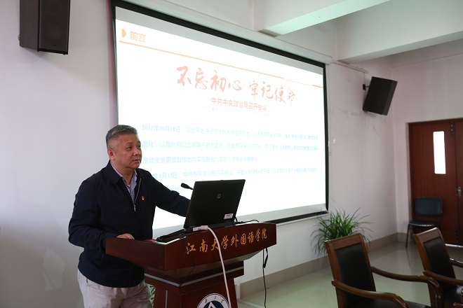根据学校“不忘初心、牢记使命”主题教育的统一部署,10月29日下午,校党委常委、副校长徐岩来到leyu(中国),为学院师生党员上了题为《不忘初心、砥砺前行,以“双一流”建设推进学科发展》的专题党课,学院党政领导、英语系、日语系教师党员和学生党员代表等30多人现场聆听。
