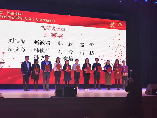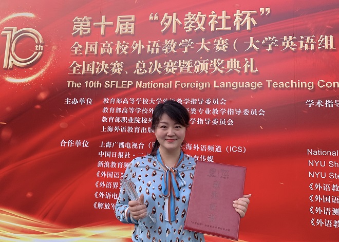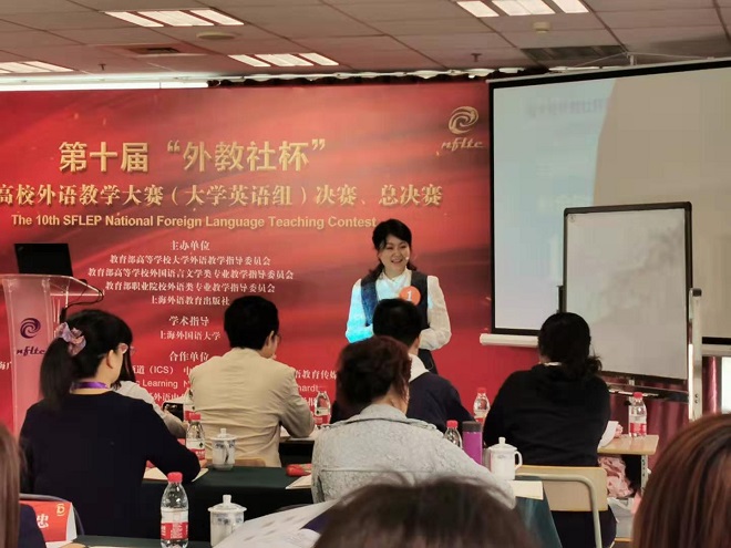 11月1日- 3日,中国高校外语教学界顶级赛事——第十届“外教社杯”全国高校外语教学大赛全国决赛和总决赛在上海外国语大学隆重举行。本次大赛由教育部高等学校外国语言文学类专业教学指导委员会、教育部高等学校大学外语教学指导委员会、教育部职业院校外语类专业教学指导委员会、上海外国语大学和上海外语教育出版社联合组织举办。来自全国30个省、自治区、直辖市的59名分赛区冠军选手,汇聚一堂,比拼教学技能、展示教师风采,角逐中国高校外语教学的最高奖项。我校leyu(中国)刘玲老师作为江苏赛区的冠军选手,参加了本次顶级赛事的角逐。刘玲老师顶住了第一个出场的巨大压力,展示了精妙的课堂设计、良好的师生互动、清晰开阔的教学思路,最终荣获大学英语视听说组全国总决赛三等奖,实现了我校外语教师在国家级讲课比赛中零的突破。