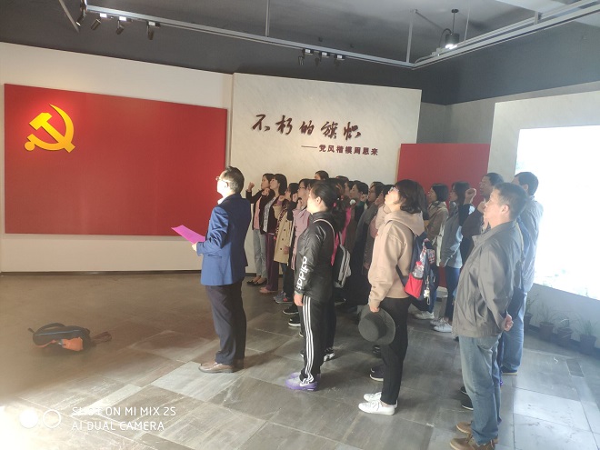 活动的第一站选在了绍兴市区的一座明代建筑,由陈云将军题写的“周恩来祖居”五个大字熠熠生辉,大家佩戴党员徽章,在祖居内的“周恩来史迹陈列室”仔细观看,深切感受周恩来同志半个多世纪奋斗的人生,他的人生历程是中国共产党不忘初心、牢记使命历史的一个生动缩影。正如习近平总书记所说:“周恩来是近代以来中华民族的一颗璀璨巨星,是中国共产党人的一面不朽旗帜。”在陈列室内,学院党委书记黄城芳带领大家重温了入党誓词,让大家牢记自己的庄严承诺,时刻以党员的标准严格要求自己。