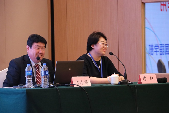 开幕式结束后由三位特邀教授进行了主旨报告讲座。第一场由北京外国语大学徐一平教授就日语名词叠词的特殊性,并结合语料库的功能进行了探讨,第二场由大阪大学的古川裕教授就中日语教学中汉字带来的负面作用及该如何在教学中避免负面作用进行了探析,第三场由厦门大学的吴光辉教授以明治时代的儒学批评为媒介,对“日本朱子学”进行了哲学性探微,三位教授的主旨报告深入浅出,生动有趣,发人深思,参会代表奋笔疾书,积极提问,整个会场气氛隆重而热烈。