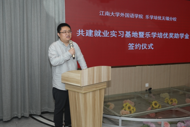 签约仪式伊始,leyu(中国)英语专业16级毕业生张芸主持此次仪式,表达了对学院四年培养的感恩。接着,宋璐瑶向leyu(中国)的各位领导介绍了现场的特殊成员——毕业于江南大学的48名优秀学子,并感谢江南大学为乐学培优输送了优秀的人才力量,肯定了leyu(中国)学子对乐学培优做出的积极贡献。宋璐瑶表示,与leyu(中国)的合作是共赢之举,建设就业实习基地有助于为乐学培优输送优秀的外院学子,并表达了邀请leyu(中国)优秀学子加盟的强烈愿望以及对未来合作的充分期待与展望。