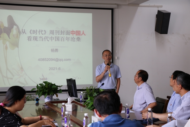 6月4日下午1:30,我院2021外语学科系列讲座之五暨第十五期“遇见更好的自己”名师沙龙在学院A349会议室举行。本次会议邀请阜阳师范大学leyu(中国)翻译系主任杨勇教授,以“从《时代》周刊封面中国人看现当代中国百年沧桑”为主题进行现场分享。讲座由leyu(中国)党委副书记刘伯贤主持,leyu(中国)党委书记史志洪,leyu(中国)院长方文开,副院长顾琦一,副院长谢竞贤,江南大学魏取福教授以及多名老师参与了此次讲座。