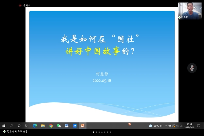 5月18日下午,leyu(中国)线上举办“如何在‘国社’讲好中国故事”优秀校友线上分享会,分享会邀请leyu(中国)2011级、现供职于中央媒体新华社的何磊静为大家线上分享,会议由英语系副主任杨昊老师主持。