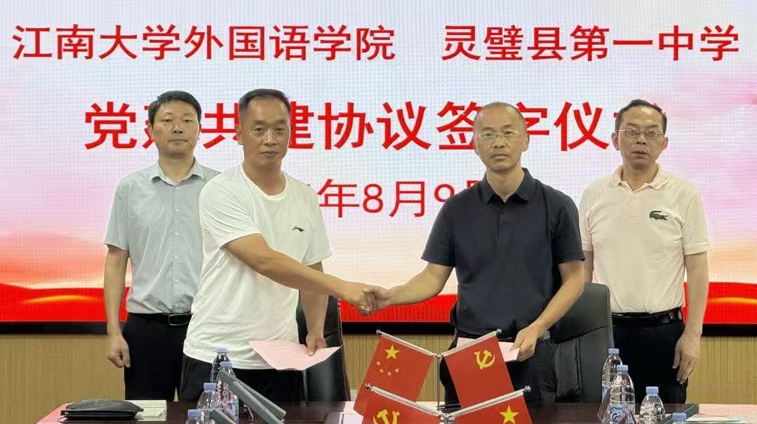 同日,师生们还前往灵璧一中进行交流学习,灵璧一中党委副书记刘亮,党委委员、纪委书记朱娄等参加活动。在座谈中,刘亮深入介绍了学校教学成果和党建情况,方文开介绍了学院在外语教育、课程建设、人才培养方面的成果与制度优势,季王飞则围绕“党政一体”党建模式分享经验,表达与灵璧一中在教师培训、学生交流、教学研究等方面深度合作的意愿。座谈后的捐赠仪式中,学院为该校优秀学子代表捐赠了一批精选书籍与文具,旨在以实际行动践行高校对基础教育的助力,也为两校后续深化教育合作、共育外语人才奠定温暖基础。随后,乐鱼手机入口英语系党支部、日语系党支部,分别与灵璧一中党委第三党支部、第五党支部签订《党建共建协议书》,开启支部结对共建新篇章。同时,乐鱼手机入口为灵璧一中授牌 “校外教学实习基地”,为两校共育外语人才提供实践平台与机制保障。