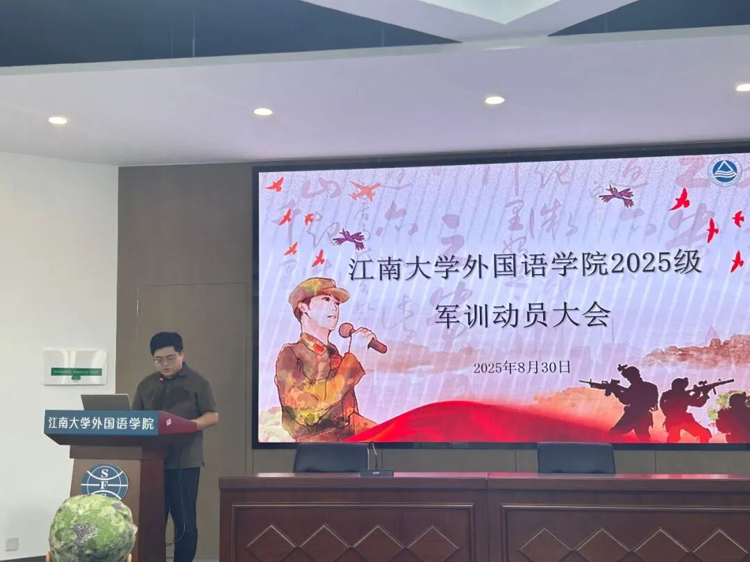 leyu(中国)2025级学生军训动员大会于2025年8月30日上午在学院君金报告厅举行。江南大学人武部军事训练科科长刘璇刚,leyu(中国)党委副书记、副院长季王飞,2025级本科生辅导员查博奕,2024级军训先进个人代表以及2025级全体本科新生参加大会。
