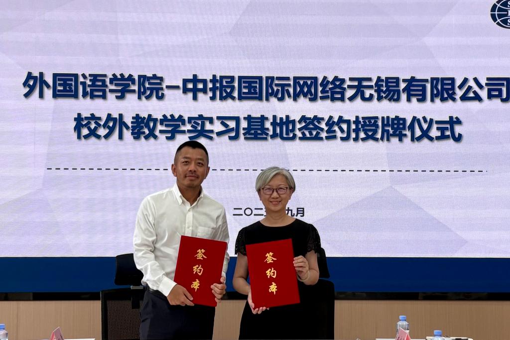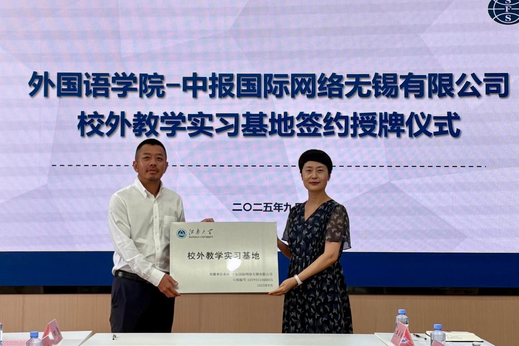 王政华在发言中介绍了中国日报作为中央主要宣传文化单位的定位,以及无锡公司自2013年成立以来在外宣平台建设、海外传播等方面取得的成果。他强调,国际传播事业关键在人才,期待更多“懂外语、懂传播、有奉献精神”的江大外院学子加入,共同讲好中国故事,传播好中国声音。