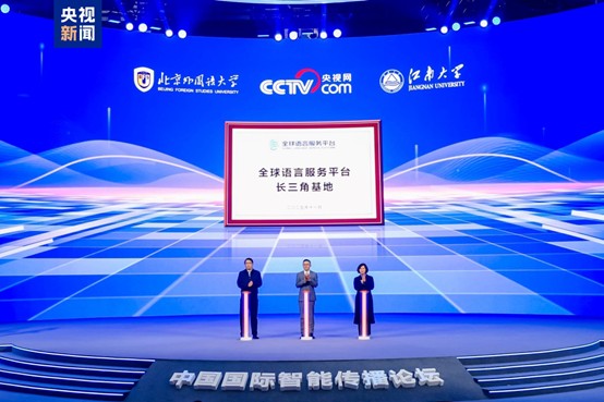 开幕式上,李旸与央视网副总经理赵磊、北京外国语大学副校长丁浩为全球语言服务平台长三角基地揭牌。由总台央视网、北京外国语大学联合江南大学共同打造的全球语言服务平台长三角基地落地无锡,将依托长三角区位优势、整合高校及企业资源,以AI赋能打造综合性语言服务枢纽,为开展国际传播、推动文明互鉴提供重要支撑。